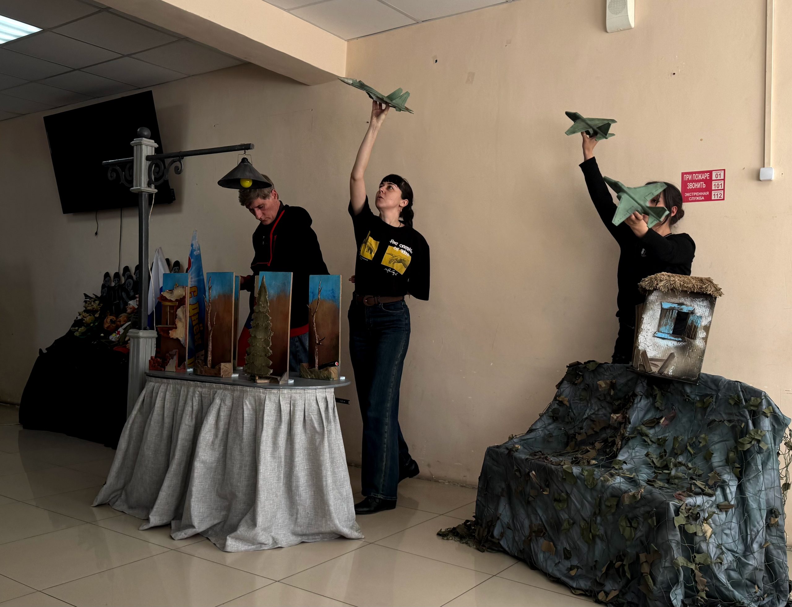 Артисты театра исполнили для школьников фрагмент спектакля «Семейный нобеСВОд» (реж. Е. Сафронова), посвященного теме специальной военной операции.