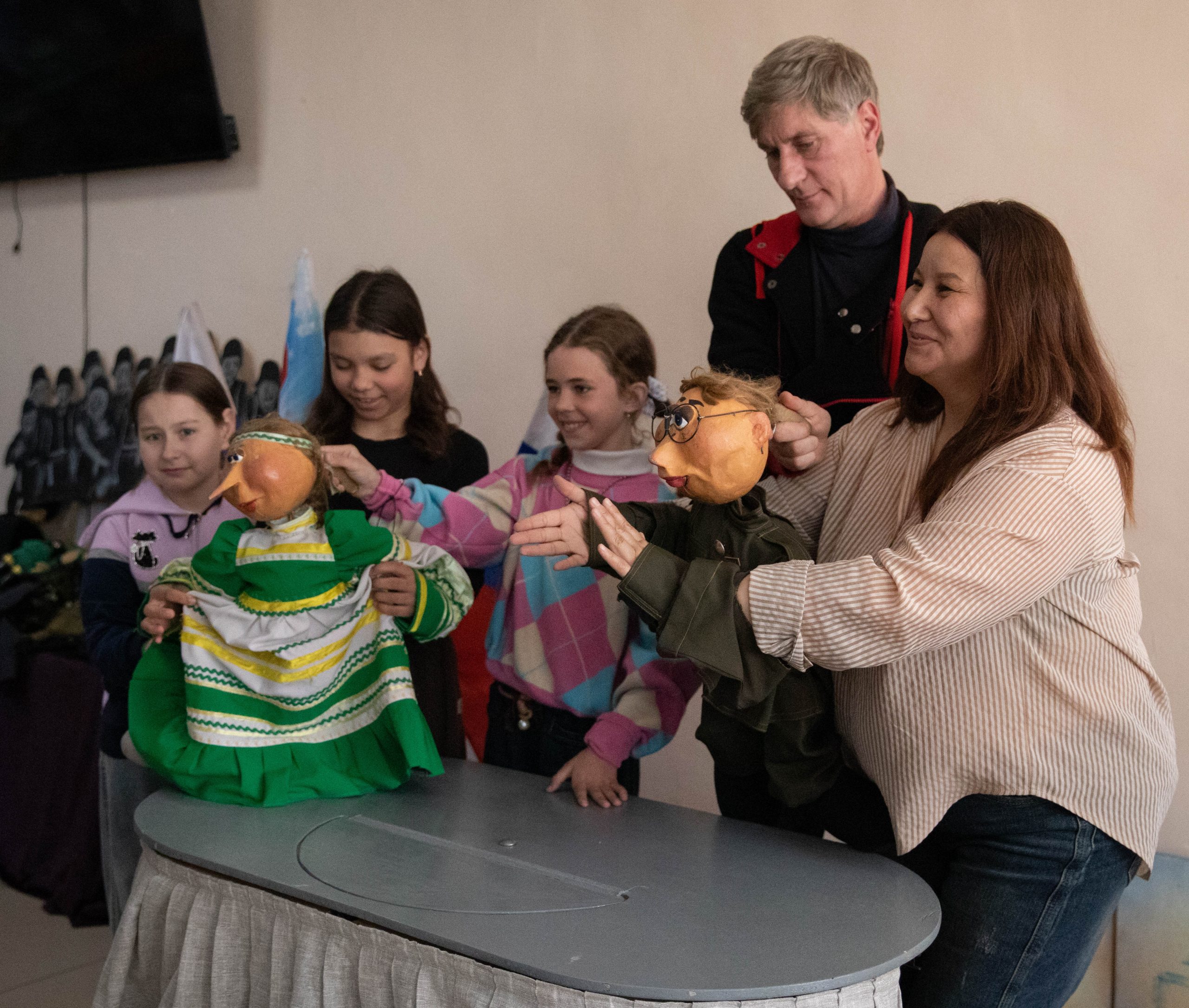 Также прошел мастер-класс по кукловождению, где были показаны куклы из спектаклей военной тематики «Петрушка на войне» (реж. О. Мельников) и «Сталинградская мадонна» (реж. С. Жарков). Участники Движения смогли познакомиться с куклами и попробовать себя в роли кукловода.